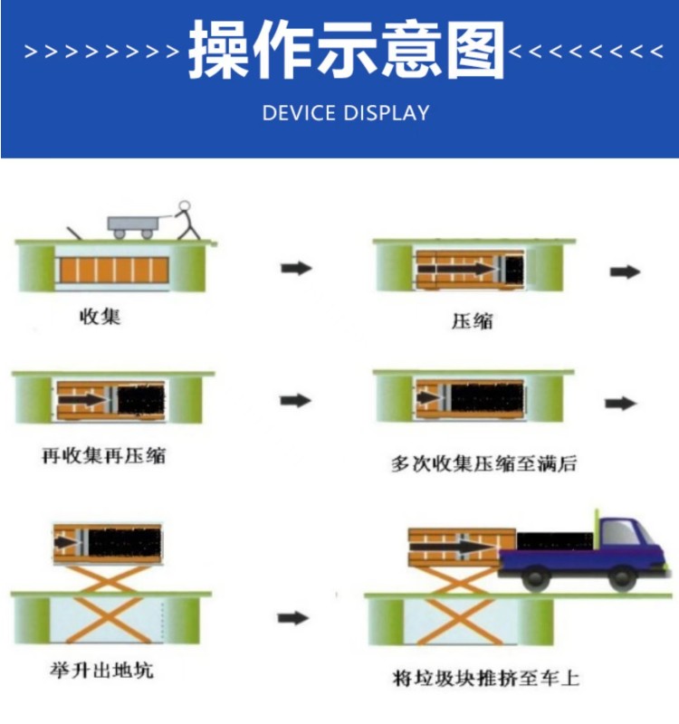 ◇垃圾儲存、壓縮及寄存全部在地面以下,地面上沒有垃圾散落,對環(huán)境影響較小,環(huán)保性好;垃圾壓縮后密度高,水份少,可